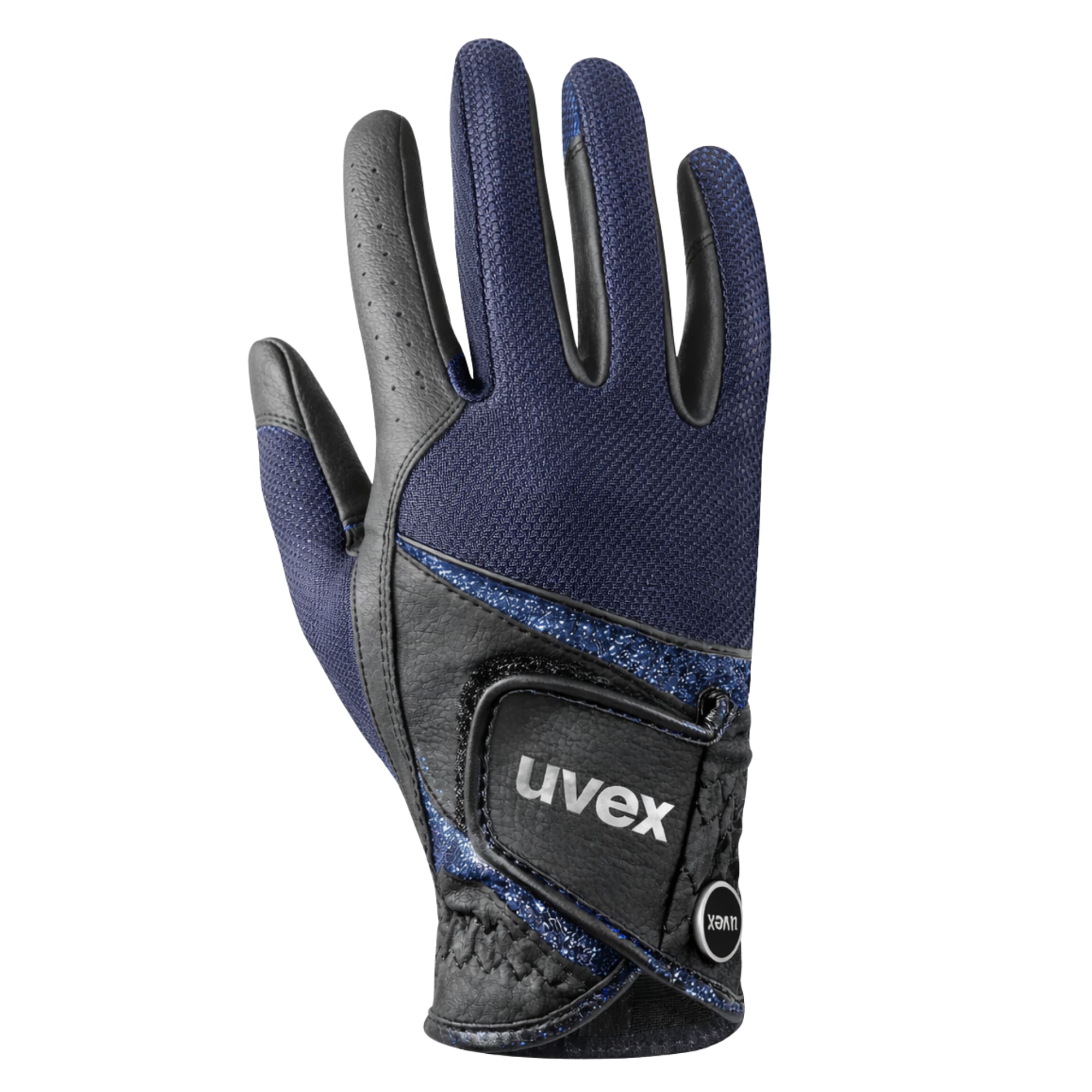 Dieser sehr bequeme und atmungsaktive Reithandschuh von Uvex besteht aus einem Material, das sowohl 4D- als auch 2D-Stretch bietet. Der Reithandschuh Sumair Glamour bietet hervorragenden Halt bei Regen und rutschigen Zügeln. Der Reithandschuh von Uvex ist wunderschön in Schwarz mit schwarzem Glitzer auf dem Handrücken. Der Reithandschuh Sumair Glamour hat Mesh über dem Handrücken, wodurch der Reithandschuh in den heißen Sommermonaten luftig und sehr angenehm zu tragen ist.
