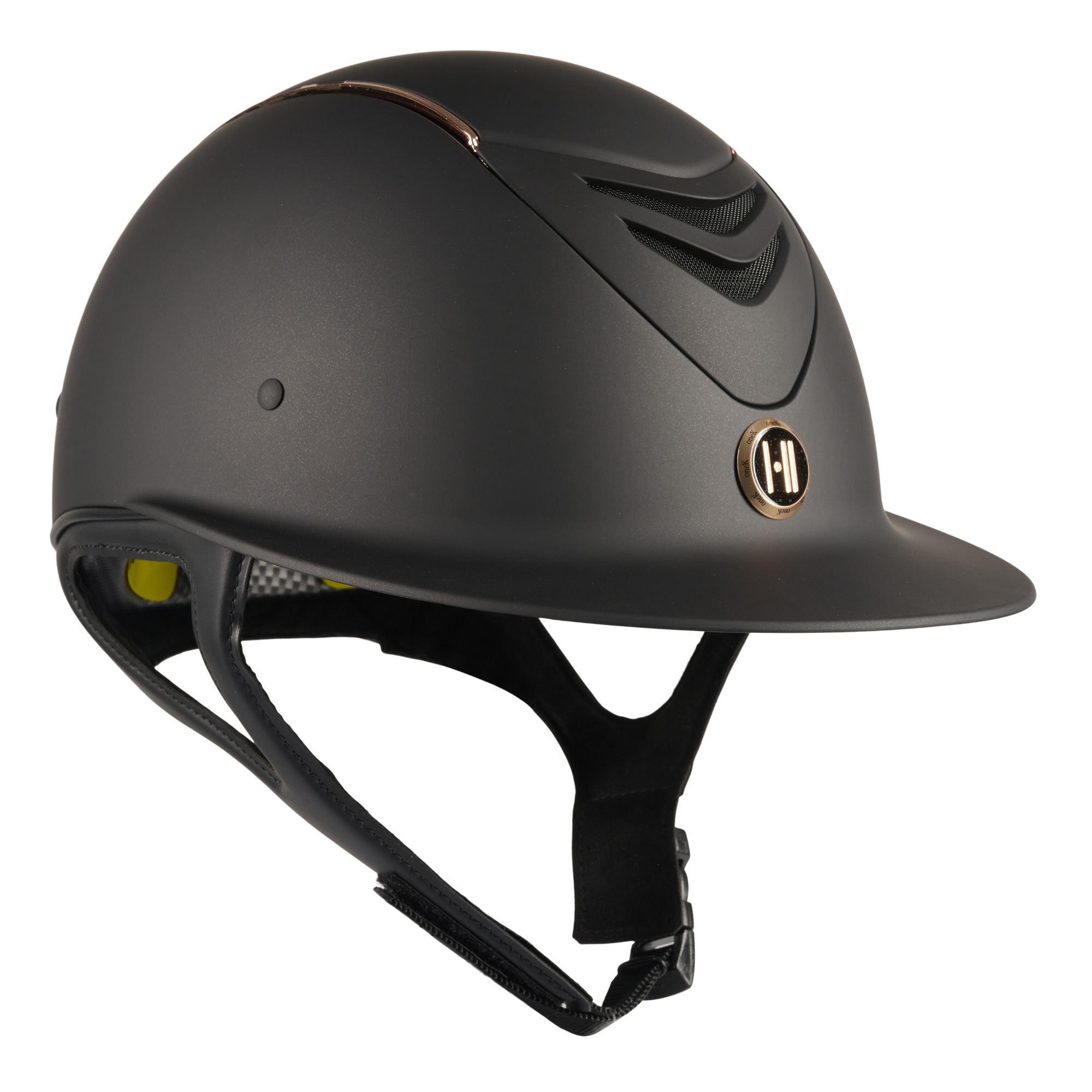 Der Avance MIPS Matt Rosegold hat einen breiteren Schirm, der das Sonnenlicht abschirmt und den Reithelm superelegant macht.