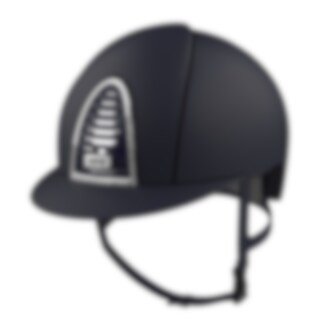 Der Reithelm Cromo 2.0 hat eine marinblaue matt lackierte Schale, Vorderseite, Rückseite und Schirm. Chromrahmen mit Swarovski® Crystal, Chrome Sub-Grid, marineblaues Gitter und Knopf sowie einem Kinnriemen aus marineblauem Leder. Cromo 2.0 verfügt über ein innovatives mechanisches System, das es dem Reiter ermöglicht, Farbe und Design sowohl auf der Vorder- als auch auf der Rückseite selbst zu ändern, um den Helm an seinen eigenen Geschmack und seine Vorlieben anzupassen.