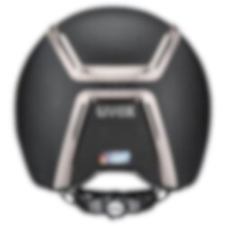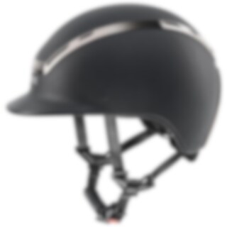 Dieser Reithelm hat einiges zu bieten - sowohl in der Optik als auch in den Funktionen. Sie werden den Bezug aus körnigem veganem Leder und den auffälligen Rahmen aus metallisch schwarzem Chrom lieben. Es macht ihn schick und unterstreicht den sportlichen Stil dieses Reithelms. Abgerundet wird der coole Look durch den neuen verstellbaren Y-Teiler von Uvex mit Kinnriemen aus veganem Leder.