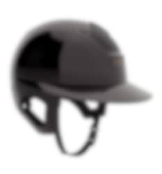 Der Freejump Voronoï Glossy Black Reithelm mit Sonnenblende und Temple Protection (T/P) ist ein revolutionärer Reithelm mit erweitertem Schläfenschutz.
