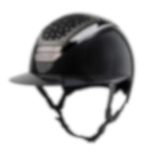 Reithelm mit Sonnenblende in Hochglanzoptik, das obere IN-OUT Top des Helms ist mit echten Swarovski-Kristallen gestaltet.