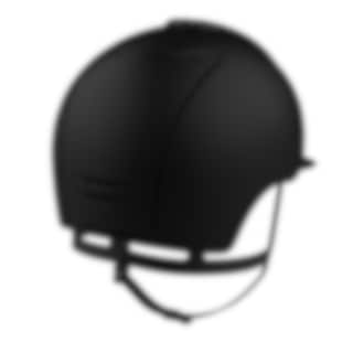 Der Reithelm Cromo 2.0 hat eine schwarze matt lackierte Schale, Rückseite, Schirm und Gitter. Glitzersamt in Schwarz auf der Vorderseite, dem Chromrahmen, Sub-Grid und Knopf sowie Kinnriemen aus schwarzem Leder. Cromo 2.0 verfügt über ein innovatives mechanisches System, das es dem Reiter ermöglicht, Farbe und Design sowohl auf der Vorder- als auch auf der Rückseite selbst zu ändern, um den Helm an seinen eigenen Geschmack und seine Vorlieben anzupassen.