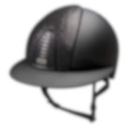 Der Reithelm Cromo 2.0 Matt Polo Inserto Glitter hat eine schwarz matt lackierte Schale, Rückseite, Schirm und Gitter. Schwarzes Glitzer auf der Vorderseite, schwarzer Rahmen, Sub-Grid und Knopf in Chrom sowie Kinnriemen aus schwarzem Leder. Cromo 2.0 verfügt über ein innovatives mechanisches System, das es dem Reiter ermöglicht, Farbe und Design sowohl auf der Vorder- als auch auf der Rückseite selbst zu ändern, um den Helm an seinen eigenen Geschmack und seine Vorlieben anzupassen.