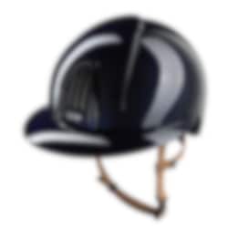 KEP Smart Nova Polo ist ein moderner Reithelm, der hohe Sicherheit, überragenden Komfort und italienische Qualität vereint. Die glänzende marineblaue Oberfläche mit elegantem Metallic-Effekt hebt die Details des Helms hervor, während der beige Kinnriemen ein exklusives Detail darstellt, das den Helm auf anspruchsvolle und stilvolle Weise hervorstechen lässt.