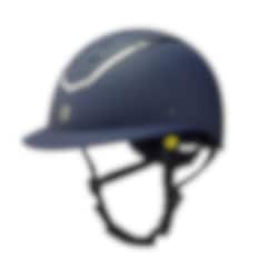 Der Kylo Mips Wide Peak Matte Reithelm ist mit seiner guten Belüftung, dem verstellbaren Kinnriemen und der Schnellverschlussschnalle henau auf die Passform beim Reiten abgestimmt. Der Helm ist auch sehr stylisch mit seiner Sonnenblende und seiner matten marineblauen Farbe, mit Details in grauem Shine.
