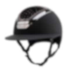 Reithelm mit Sonnenblende in mattem Finish, das obere IN-OUT Top des Helms ist mit echten Swarovski-Kristallen gestaltet.