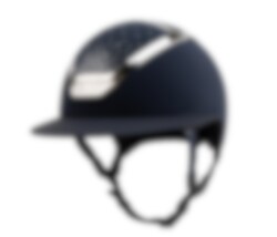 Reithelm mit Sonnenblende in mattem Finish, das Passage Top des Helms ist mit echten Swarovski-Kristallen gestaltet.