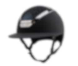 Reithelm mit Sonnenblende in mattem Finish, das Passage Top des Helms ist mit echten Swarovski-Kristallen gestaltet.
