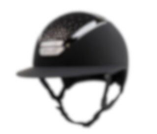 Reithelm mit Sonnenblende in mattem Finish, das Passage Top des Helms ist mit echten Swarovski-Kristallen gestaltet.