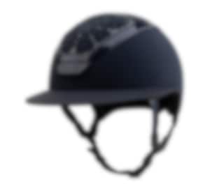 Reithelm mit Sonnenblende in mattem Finish, das Riviera Top des Helms ist mit echten Swarovski-Kristallen gestaltet.