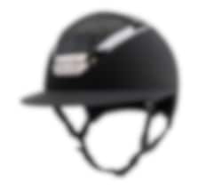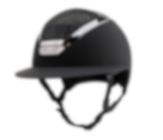 Reithelm mit Sonnenblende in mattem Finish, das Waterfence Top des Helms ist mit echten Swarovski-Kristallen gestaltet.