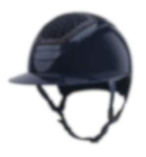 Reithelm mit Sonnenblende in Hochglanzoptik, das obere IN-OUT Top des Helms ist mit echten Swarovski-Kristallen gestaltet.