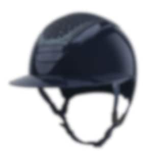 Reithelm mit Sonnenblende in Hochglanzoptik, das obere IN-OUT Top des Helms ist mit echten Swarovski-Kristallen gestaltet.
