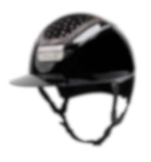 Reithelm mit Sonnenblende in Hochglanzoptik, das obere IN-OUT Top des Helms ist mit echten Swarovski-Kristallen gestaltet.