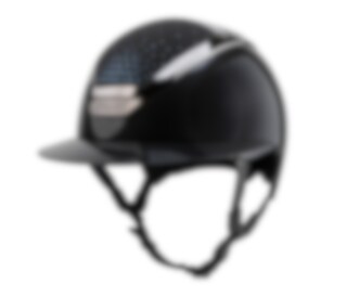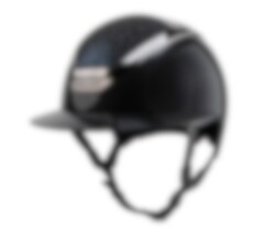 Reithelm mit Sonnenblende in Hochglanzoptik, das Passage Top des Helms ist mit echten Swarovski-Kristallen gestaltet.