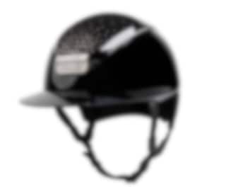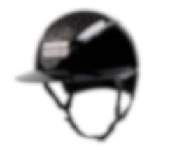 Reithelm mit Sonnenblende in Hochglanzoptik, das Passage Top des Helms ist mit echten Swarovski-Kristallen gestaltet.
