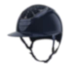 Reithelm mit Sonnenblende in Hochglanzoptik, das Riviera Top des Helms ist mit echten Swarovski-Kristallen gestaltet.