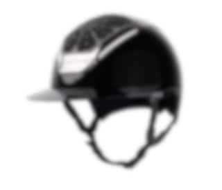 Reithelm mit Sonnenblende in Hochglanzoptik, das Riviera Top des Helms ist mit echten Swarovski-Kristallen gestaltet.