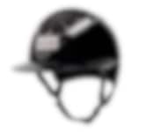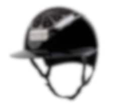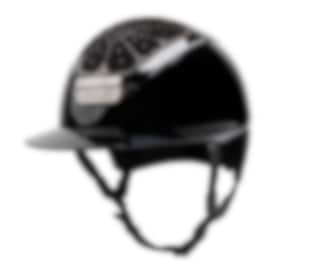 Reithelm mit Sonnenblende in Hochglanzoptik, das Riviera Top des Helms ist mit echten Swarovski-Kristallen gestaltet.
