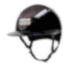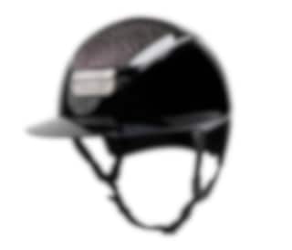 Reithelm mit Sonnenblende in Hochglanzoptik, das Waterfence Top des Helms ist mit echten Swarovski-Kristallen gestaltet.