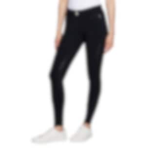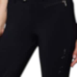 Schwarze Damenreithose Diane von Samshield aus elastischem, funktionellem Stretchmaterial mit eleganten Swarovski-Kristallen an den Gesäßtaschen.
