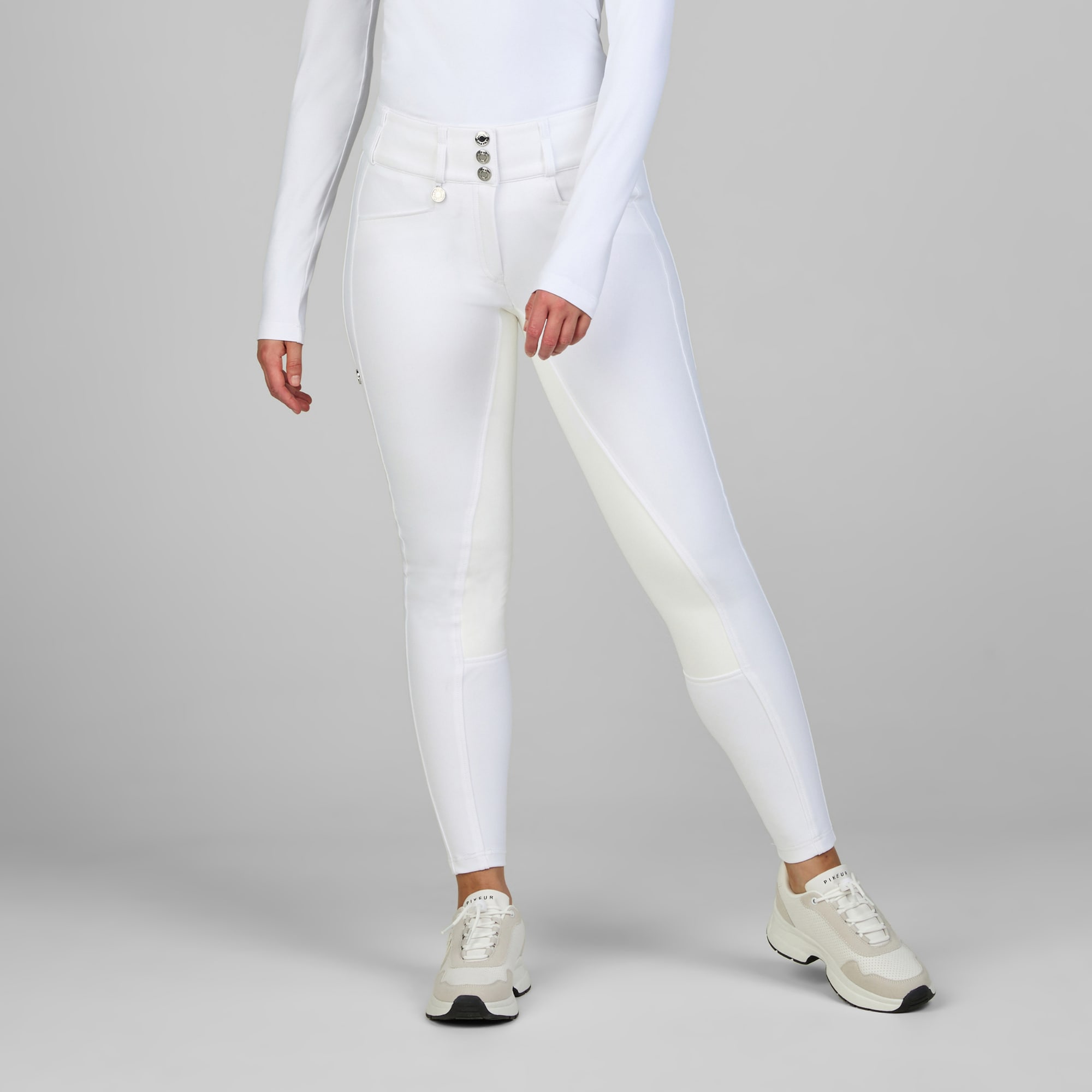 New Candela von Pikeur ist eine Reithose mit hoher Taille und breitem Bund mit drei Knöpfen, Fronttaschen sowie einer Handytasche. New Candela besteht aus dem sehr anschmiegsamen 4-Wege-Stretchmaterial Pro Performance, das eine bequeme und bewegungsfreundliche Reithose garantiert, die gleichzeitig Stabilität beim Reiten bietet.