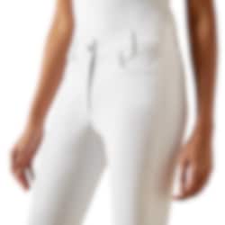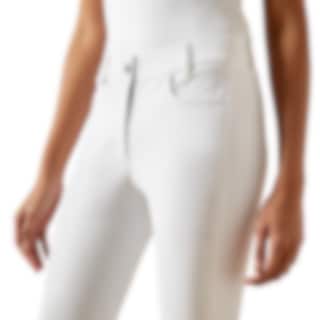 Weiße Reithose mit Vollbesatz in Silikon-Grip, hohem Bund, Handytasche und technischem Komfort für den Turniereinsatz.