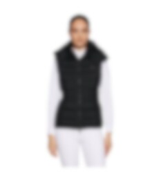 Die Weste ist schwarz und lässt sich daher problemlos mit den meisten Kleidungsstücken kombinieren. Eine sehr praktische Weste, die dank ihres eleganten Designs sowohl im Alltag als auch im Stall getragen werden kann.
