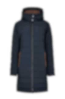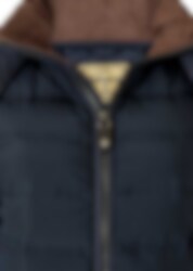 Ballybrophy ist eine warme und unglaublich stylishe Daunenjacke in Marine mit braunen Details von Dubarry.