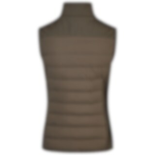 Elastische Hybridweste mit Stehkragen aus wasser- und windabweisendem Nylonstoff. Gefüllt mit wärmenden Fibreballs in Kanalkonstruktion auf Vorder- und Rückseite. Seitenteile und Schultern aus weichem Softshell mit gebürsteter Innenseite für zusätzlichen Komfort.