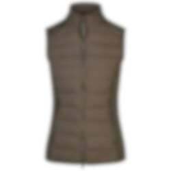 Elastische Weste mit Stehkragen in Hybridkonstruktion, die funktionelle Materialien für mehr Komfort und Bewegungsfreiheit kombiniert. Vorder- und Rückseite bestehen aus wasser- und windabweisendem Nylonstoff mit eingewebten Kanälen, die mit wärmenden Fibreballs gefüllt sind. Seitenteile sowie Schulterpartien vorne und hinten sind aus weichem Softshell mit einer Innenseite aus gebürstetem, wärmendem Material gefertigt.
