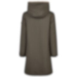 Die Regenjacke hat einen wasserdichten 2-Wege-Reißverschluss vorne sowie Reißverschlüsse an Taschen und Seitenschlitzen. Details wie schwarze Prints an Ärmeln, Kapuze und Schlitzen sowie ein Silikonpatch am Ärmel runden das durchdachte Design ab. Die Kapuze ist mit einem Magnetverschluss für einfache Handhabung ausgestattet.