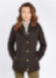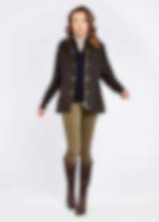 Diese stylische Jacke hat eine Außenseite aus gewachster Baumwolle und eine PrimaLoft®-Füllung. Die Mountrath Jacke hat Details aus Leder und Wildlederimitat an Armenden, im Nacken und an den Taschen. Die Jacke hat einen Zwei-Wege-Reißverschluss und Knöpfe mit Dubarry-Logos darauf. Die Jacke Mountrath hat die Farbe Java und ist leicht Figurbetont geschnitten, was diesem ansonsten komfortablen und ländlichen Stil eine elegante Note verleiht. Die Jacke passt perfekt in den Stall, für den Alltag oder für andere Anlässe!