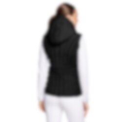 Die Weste ist schwarz und dadurch vielseitig kombinierbar - ein äußerst praktisches Kleidungsstück, das dank seines eleganten Designs sowohl im Alltag als auch im Stall perfekt getragen werden kann.