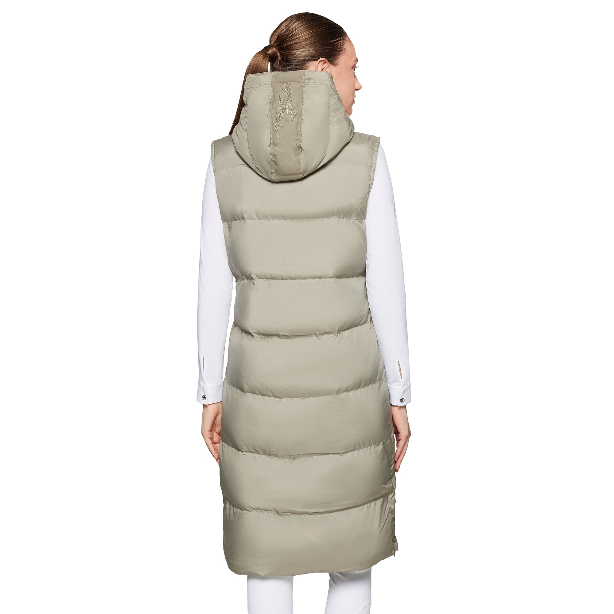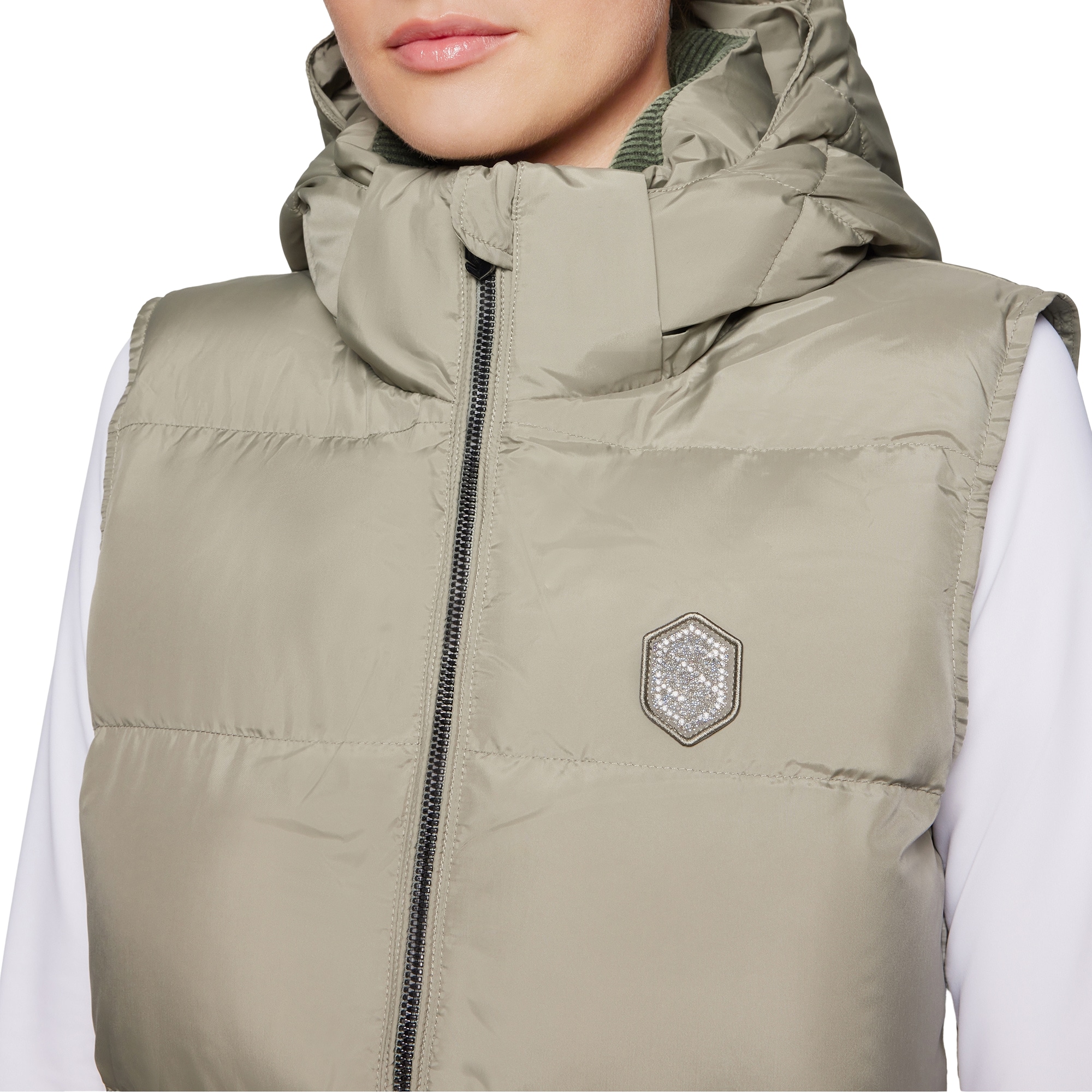 Die Elea Puffer in Patine von Samshield ist eine lange, ärmellose Weste mit abnehmbarer Kapuze und Samshield-Blason aus Swarovski®-Kristallen - perfekt für Reiter, die Stil und Funktion kombinieren möchten.