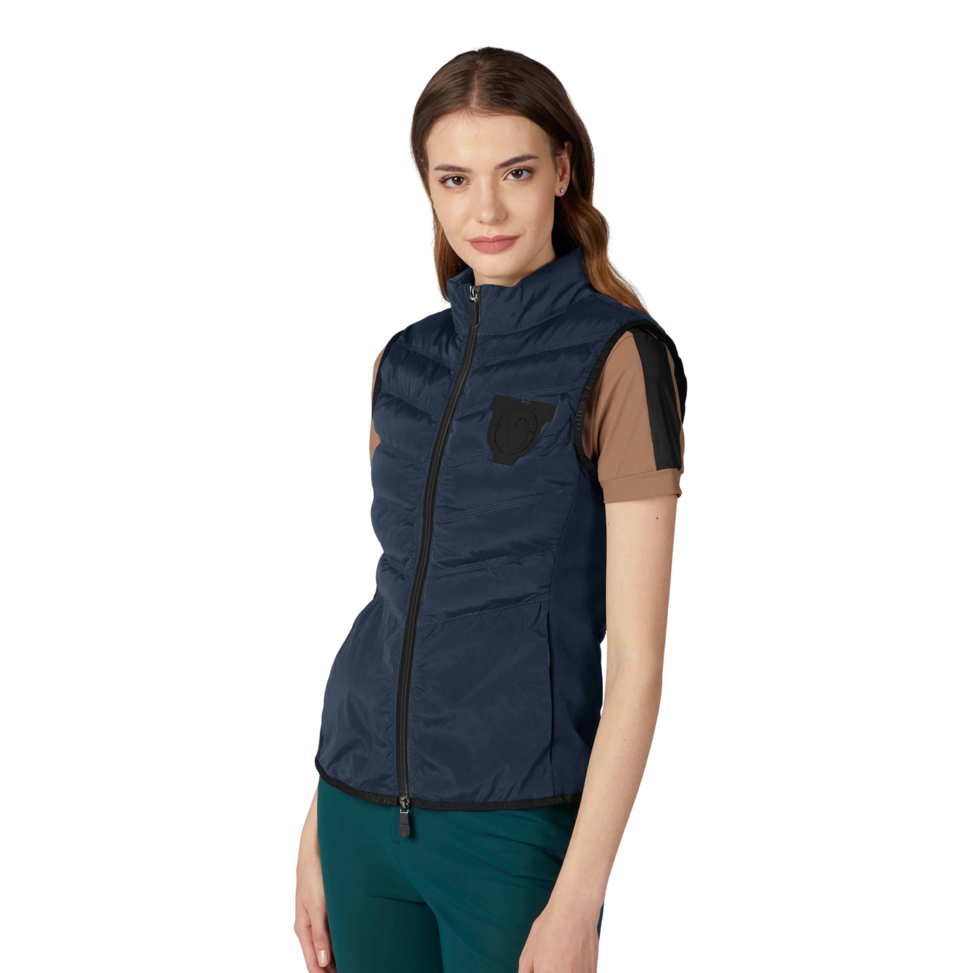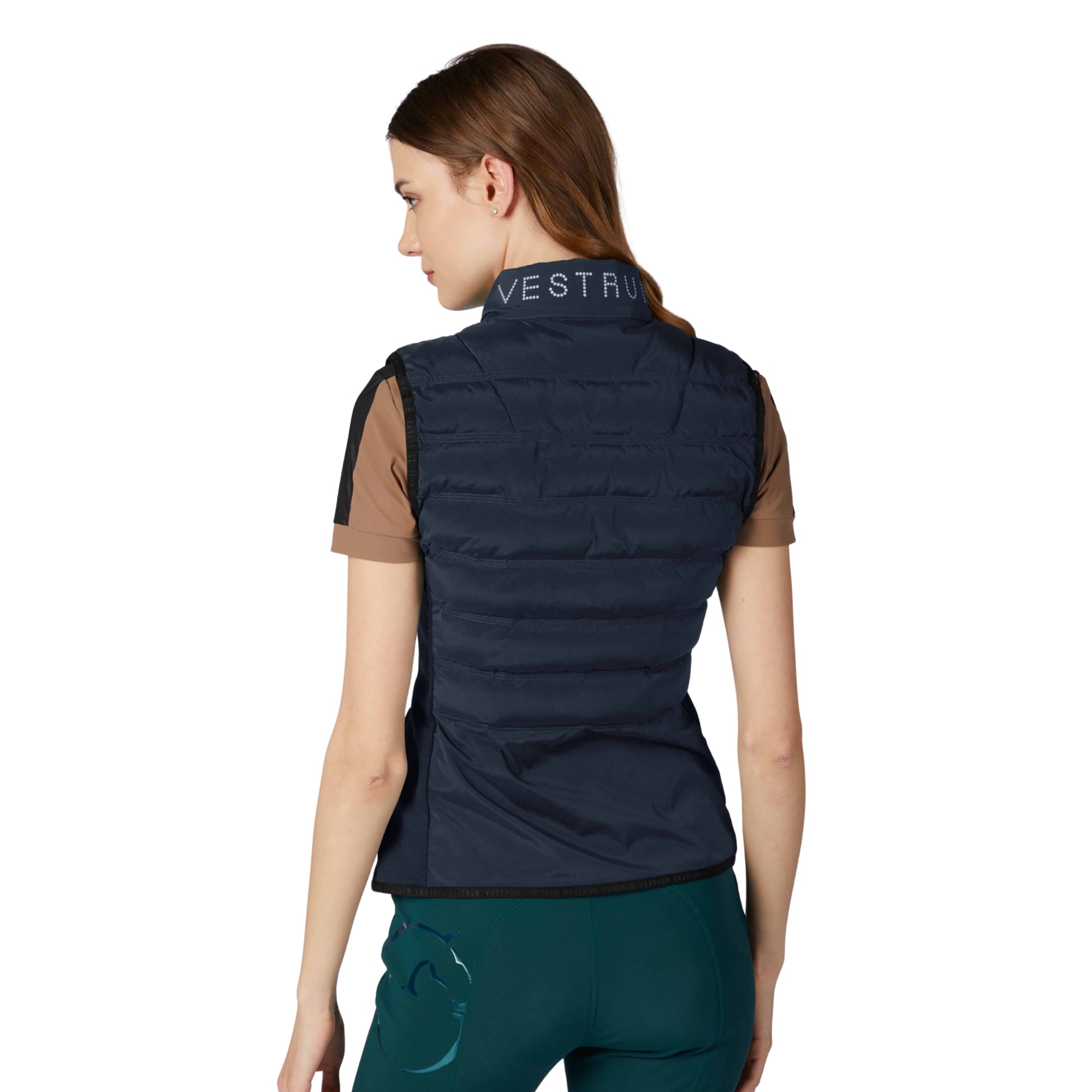 Die Vestrum Fortaleza Reitweste ist eine marineblaue Hybridreitweste, die isolierende Einsätze mit flexiblen Partien kombiniert und so eine geschmeidige Passform bietet. Die Weste hat einen gesteppten oberen Bereich vorne und hinten, der leichte Wärme bietet, ohne sich schwer anzufühlen.