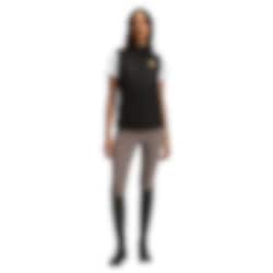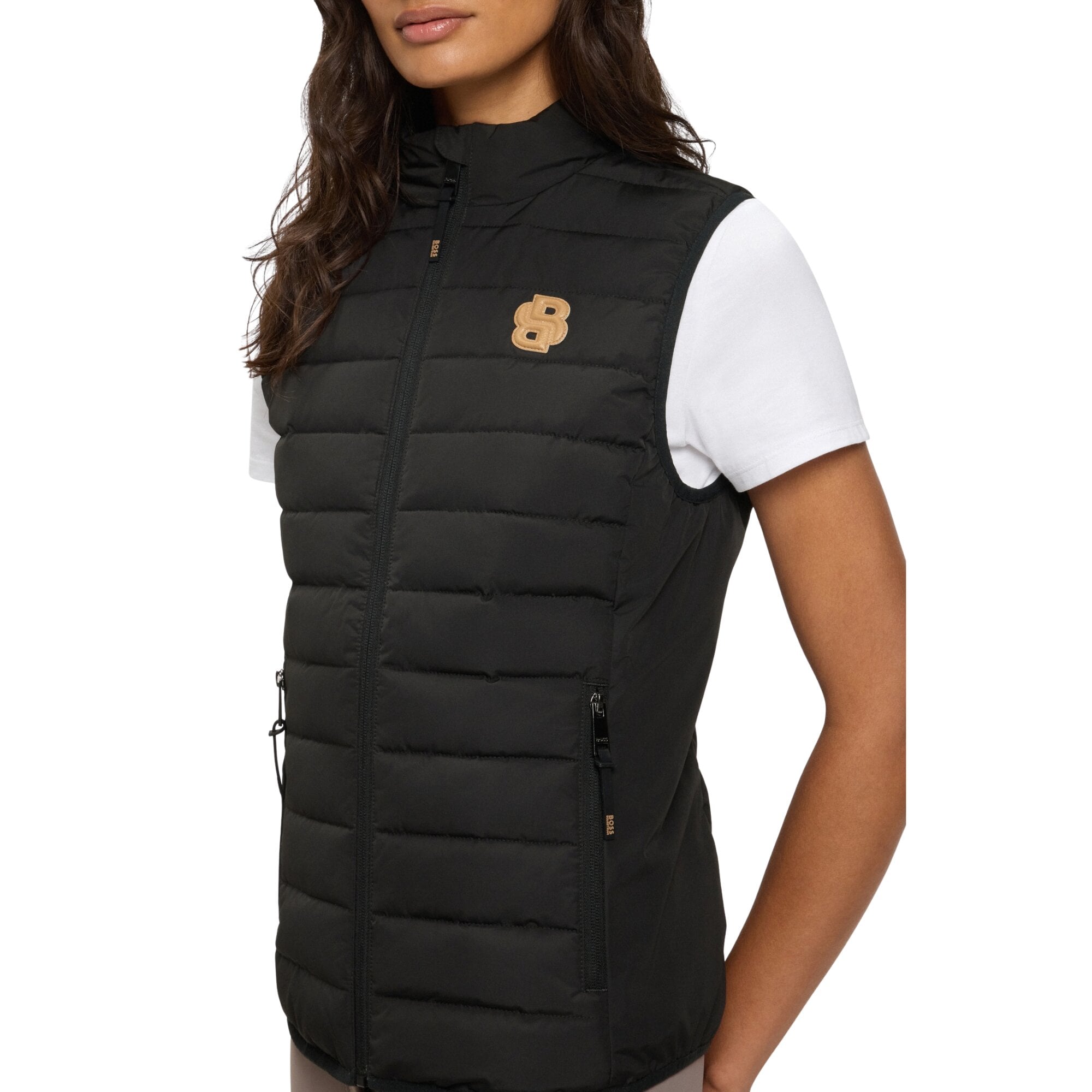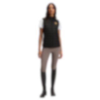 Livian ist eine leicht wattierte Weste von BOSS Equestrian, die vorne und hinten gesteppt ist, während die Seitenteile ungefüttert aus einem leichten, stretchigen Material bestehen. Das Material ist wasserdicht mit einer Wassersäule von 10.000 mm und einer Atmungsaktivität von 10.000 MVP, wodurch die Weste ideal für wechselnde Wetterbedingungen ist. Auf der linken Brust befindet sich ein stilvoller Kunstleder-Patch in Form des ikonischen Double-B-Logos, und auf dem Rücken sitzt ein exklusiver Kunstleder-Patch mit dem BOSS Equestrian-Logo.