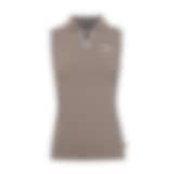 Mörkblå pikétröja med knäppning och logotyp på bröstet