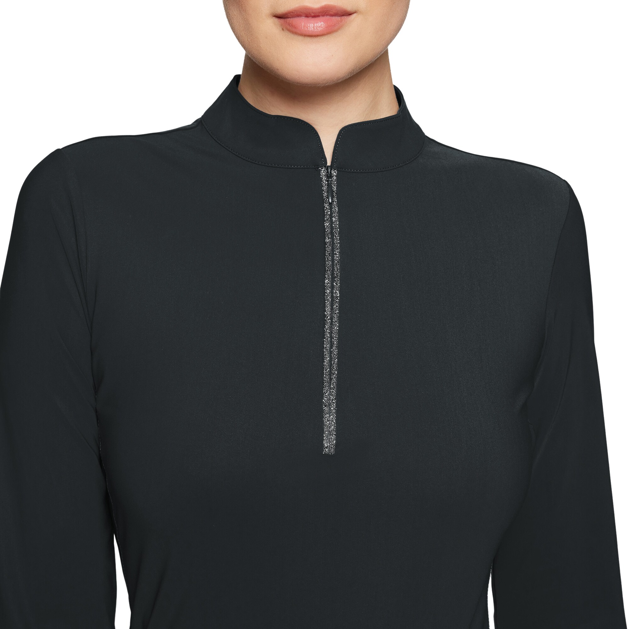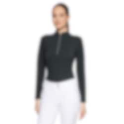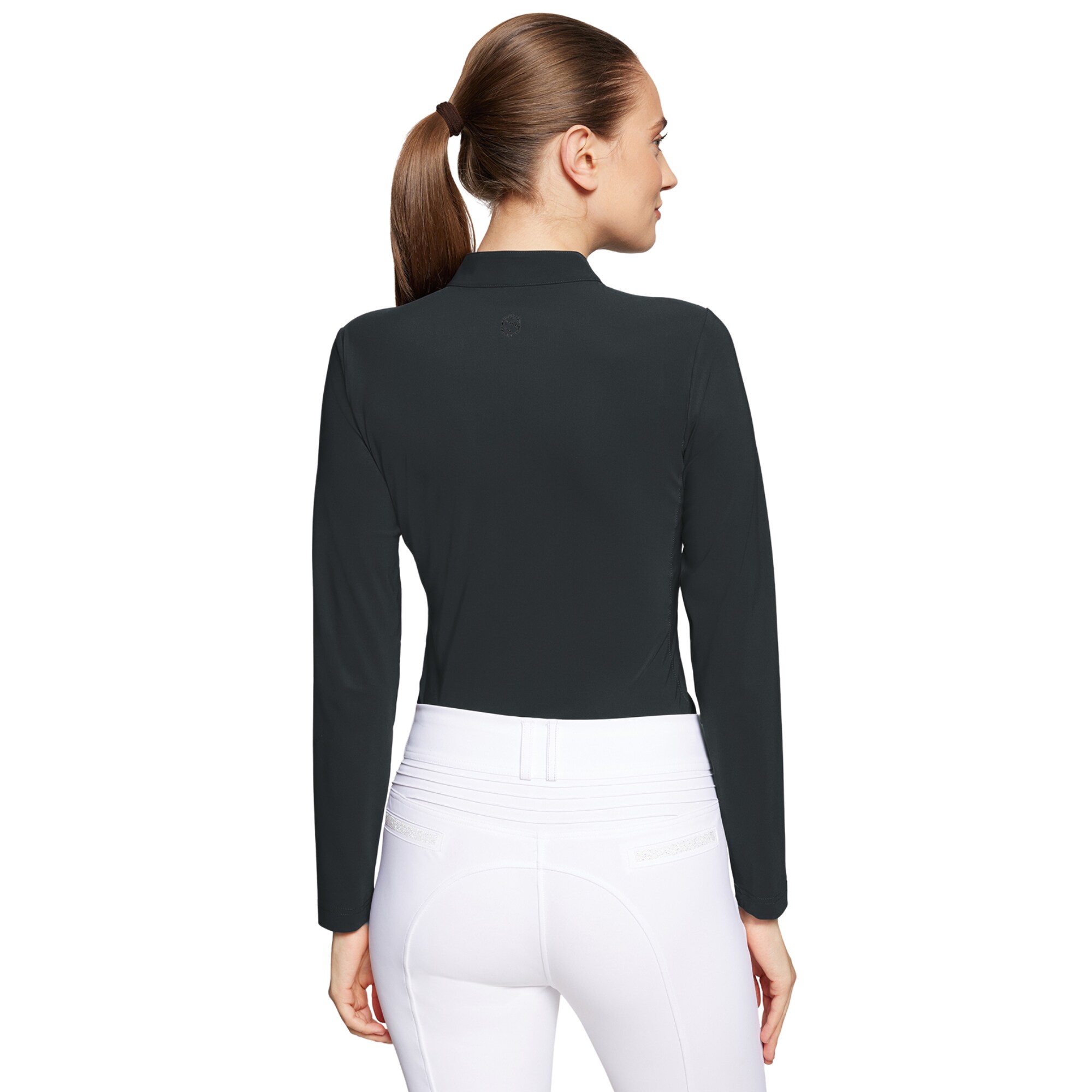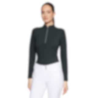 Das Brunella Reitshirt von Samshield in Moonless Night ist ein elegantes langärmliges Reitshirt mit Stehkragen und halbem Reißverschluss. Gefertigt aus atmungsaktivem, elastischem Funktionsmaterial und verziert mit schimmernden Swarovski®-Details.