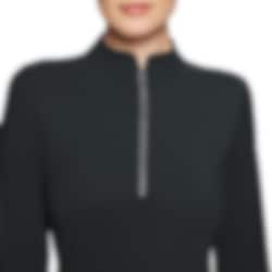 Die feminine Passform wird durch einen hohen Stehkragen mit halbem Reißverschluss unterstrichen, der schützt und gleichzeitig einen klaren, stilvollen Look verleiht. Der Kragen ist mit Swarovski® Crystal Fabric und dem ikonischen Samshield-Blazon aus Kristallen verziert, während der Ärmel mit einem Logo in Crystal Decor geschmückt ist. Diese Details verleihen dem Shirt eine einzigartige und luxuriöse Ausstrahlung.
