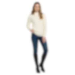 Das Zopfmuster-Detail auf der Vorderseite sorgt für einen schmeichelhaften Look, während das schlichte Design den Pullover leicht mit jeder Garderobe kombinierbar macht. Ein vielseitiges Kleidungsstück, das sich sowohl im Stall als auch in der Freizeit perfekt eignet. Zudem ist er maschinenwaschbar und dadurch besonders pflegeleicht.