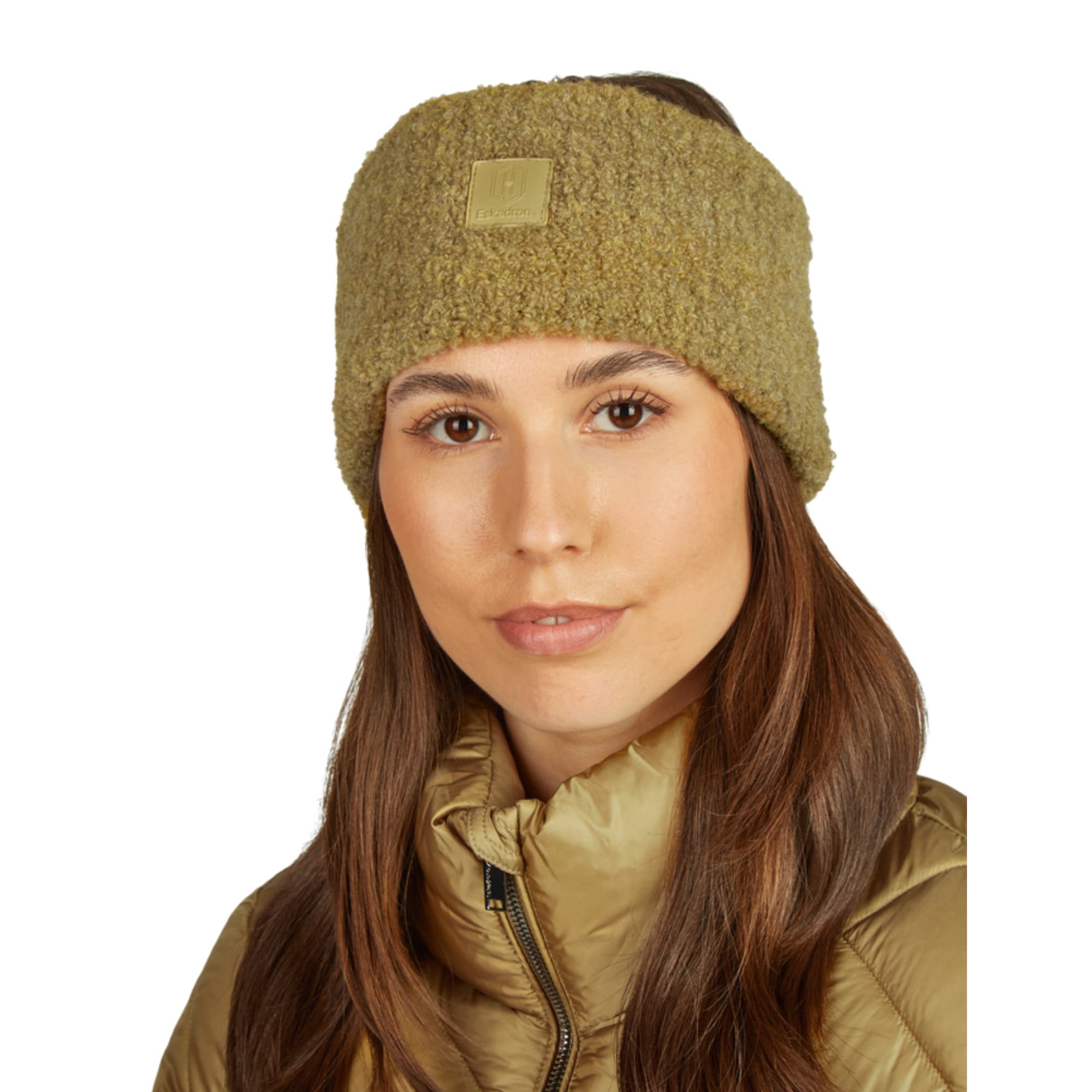 Das Bouclé-Stirnband von Eskadron in der Farbe Cardamom ist ein gemütliches und stilvolles Accessoire - perfekt für kühle Tage.