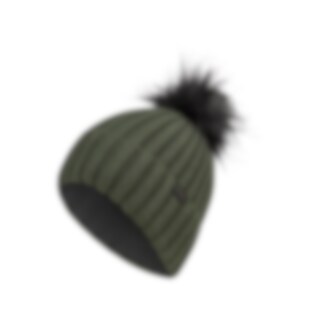 Elegante und warme Mütze von Pikeur aus einer Woll- und Acrylmischung mit weichem Polyesterfutter. Verziert mit einer dekorativen Kunstfellbommel. Farbe: Deep Khaki