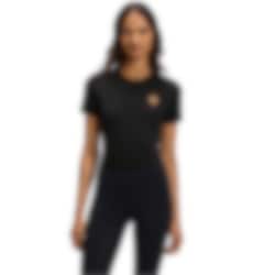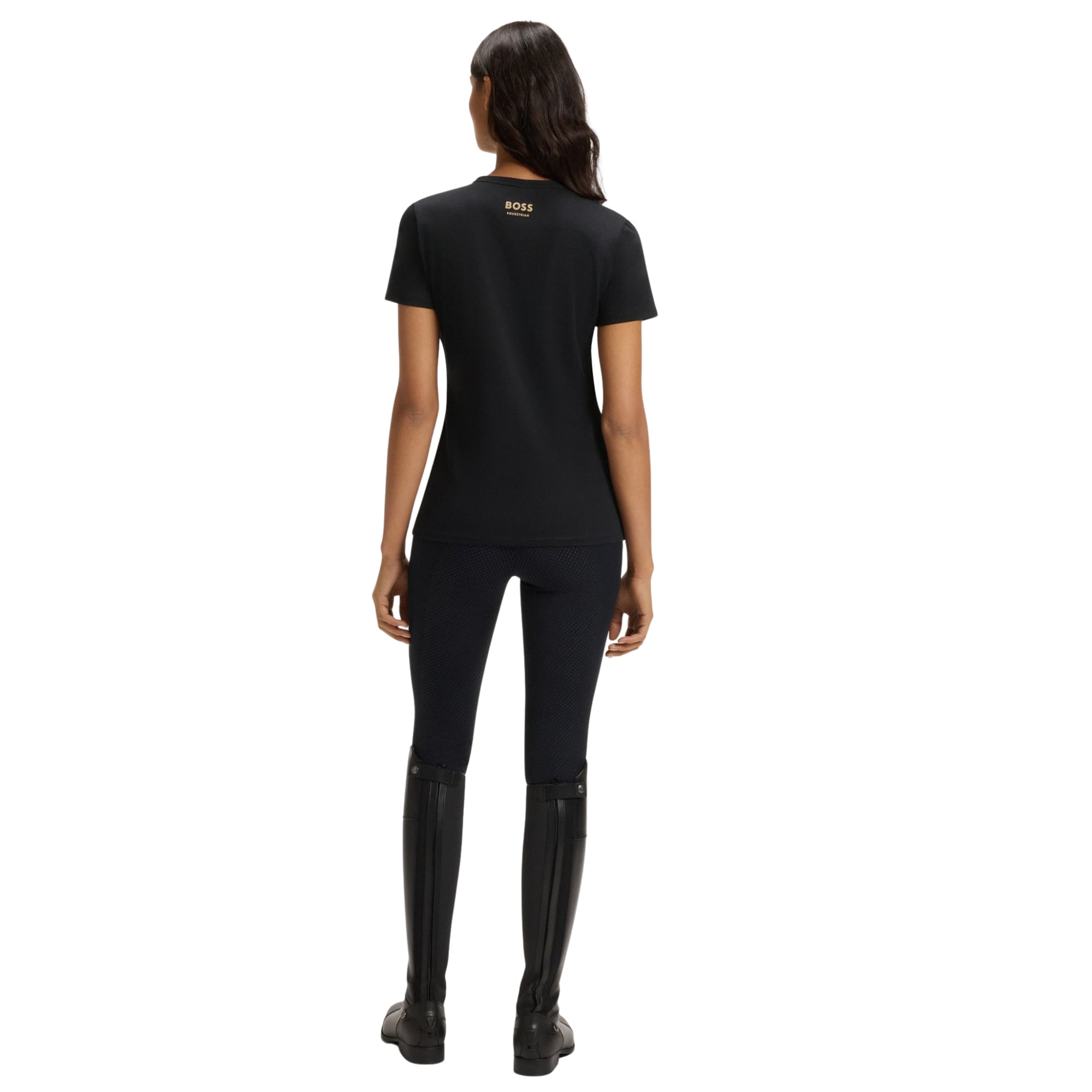Maya ist ein stilvolles und sportliches T-Shirt von BOSS Equestrian mit klassischem Rundhalsausschnitt und einer schmeichelnden Passform, die sich leicht mit Reithosen oder Jeans kombinieren lässt. Auf der linken Brust befindet sich eine exklusive Double-B-Frottéstickerei, die für ein weiches und luxuriöses Gefühl sorgt und gleichzeitig eine klare BOSS Equestrian-Signatur setzt. In der Seitennaht befindet sich eine kleine BOSS Equestrian-Flagge.