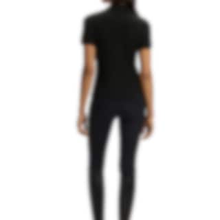 Mona ist ein stilvolles und sportliches kurzärmliges Poloshirt von BOSS Equestrian mit klassischer Passform, Kragen und Knopfleiste vorne. Auf der linken Brust befindet sich eine exklusive Double-B-Frottéstickerei, die für ein weiches und luxuriöses Gefühl sorgt. Eine kleine BOSS Equestrian-Flagge in der Seitennaht setzt ein dezentes und stilvolles Detail.