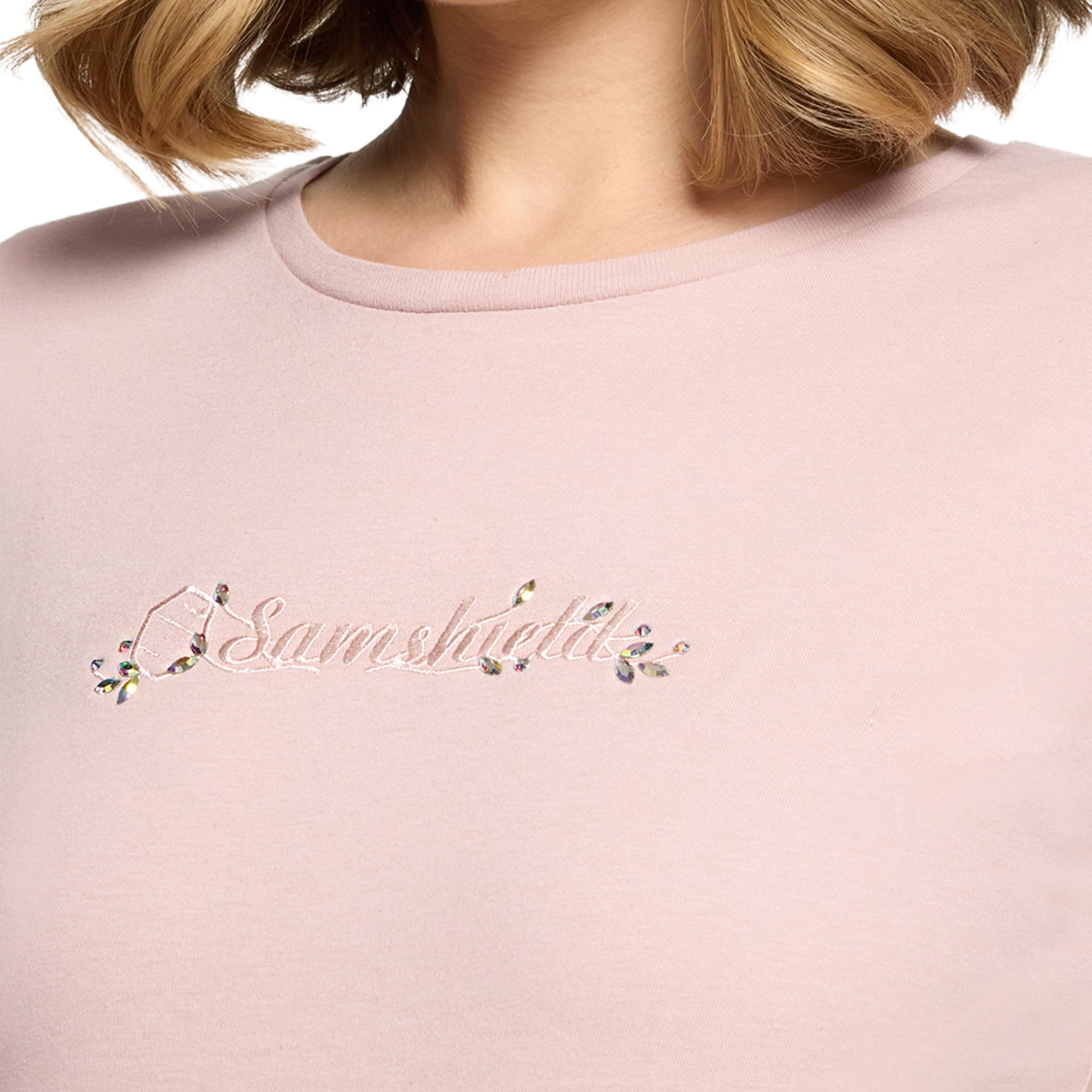 Das Design wird durch ein gesticktes Samshield-Logo mit dezenten Kristalldetails auf der Vorderseite ergänzt.