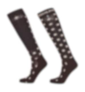 Die Reitstrümpfe Elinore sind in einem hohen Modell gefertigt und eignen sich perfekt zum Tragen unter den Reitstiefeln. Sie sind sowohl am Schaft als auch am Fuß schön gemustert.