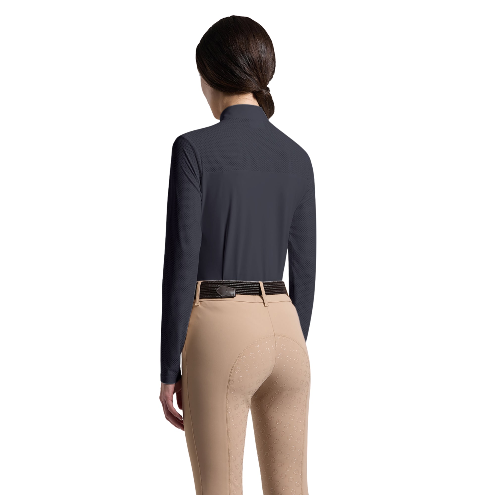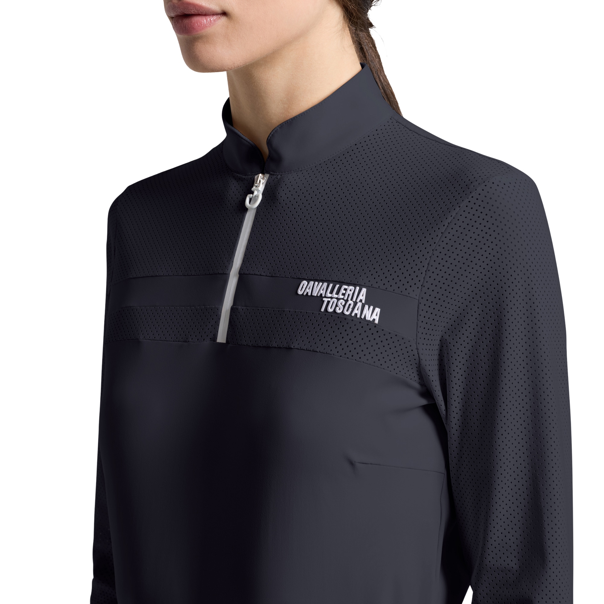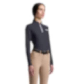 Das Reitoberteil ist aus einem technischen Material gefertigt, das Sie beim Reiten kühl hält und Feuchtigkeit ableitet. Perforierte Partien an Brust, Rücken und Ärmeln sorgen für gezielte Belüftung dort, wo sie am meisten benötigt wird, und tragen zu einer gleichmäßigen und angenehmen Temperatur bei.
