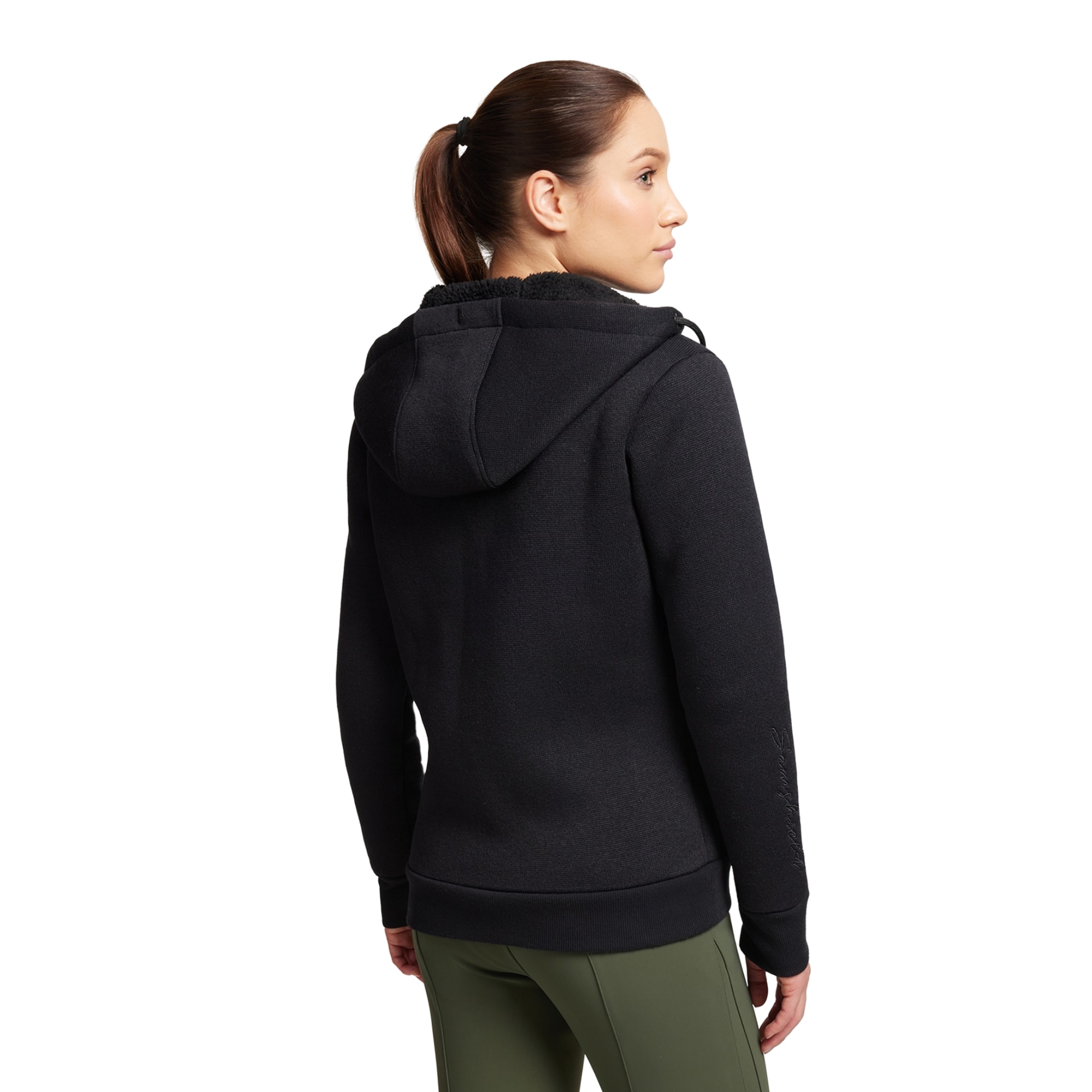 Sportlicher Hoodie Fouzia Sweatshirt in Schwarz von Samshield mit Kapuze, Stehkragen und dezenten Kristalldetails. Hergestellt aus weichem, elastischem Material, das wärmt, vor Wind schützt und pflegeleicht ist - perfekt für Reiten und Alltag.